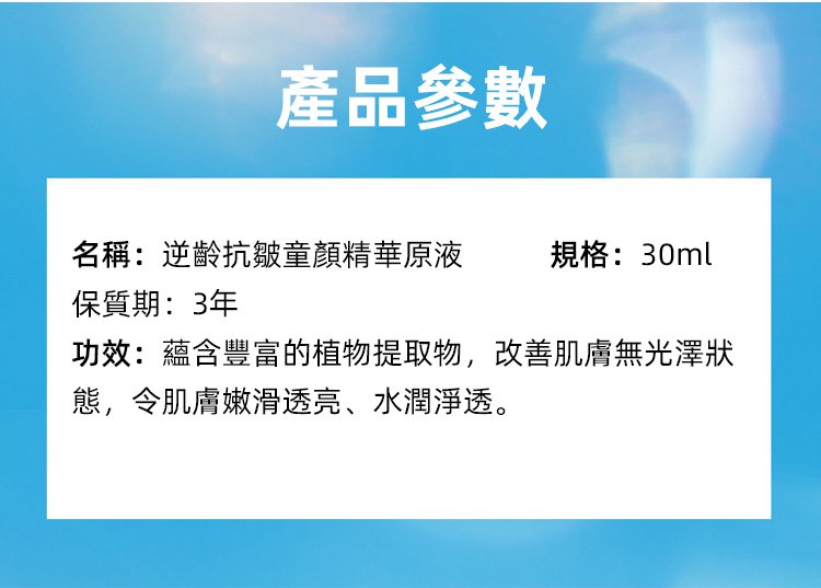 2分鐘前逆齡抗皺童顏精華原液 抵禦初老 嫩回“童顏” 奢潤修養 撫平歲月痕迹 - 【超夯活動】三入組$1099(提亮膚色)