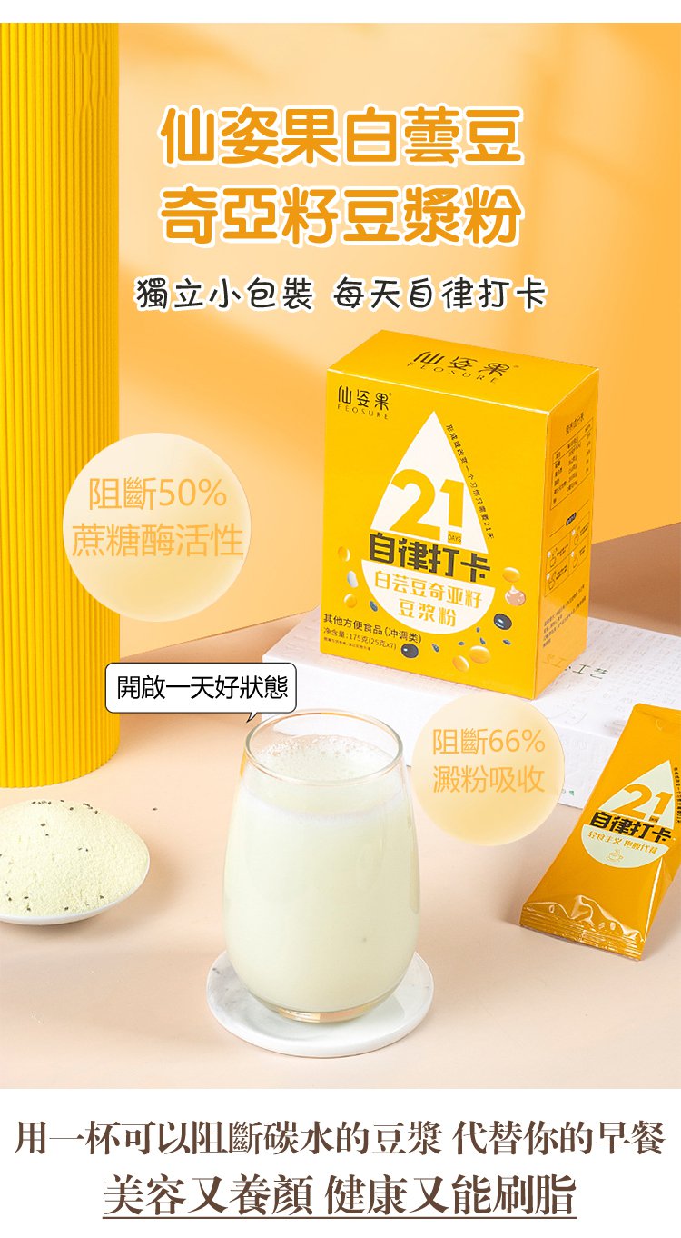 7分鐘前仙姿果白芸豆奇亞籽豆漿粉 一天一杯 美容養顏 輕卡輕脂 獨立小包裝 每天自律打卡 - 十五入組1699